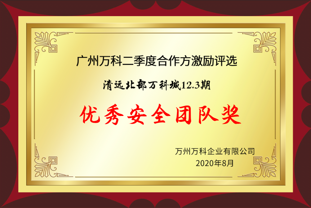2020年荣获广州万科优秀安全团队奖(5期)